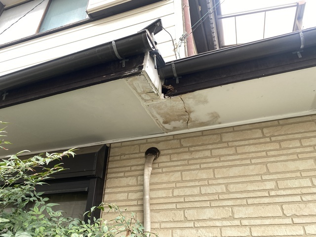 軒天に雨シミがあります。